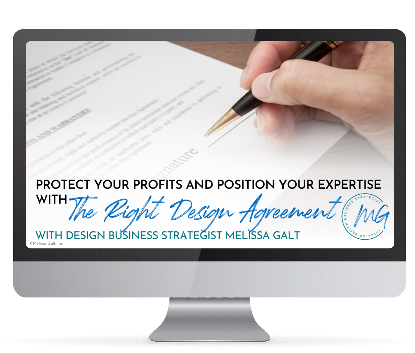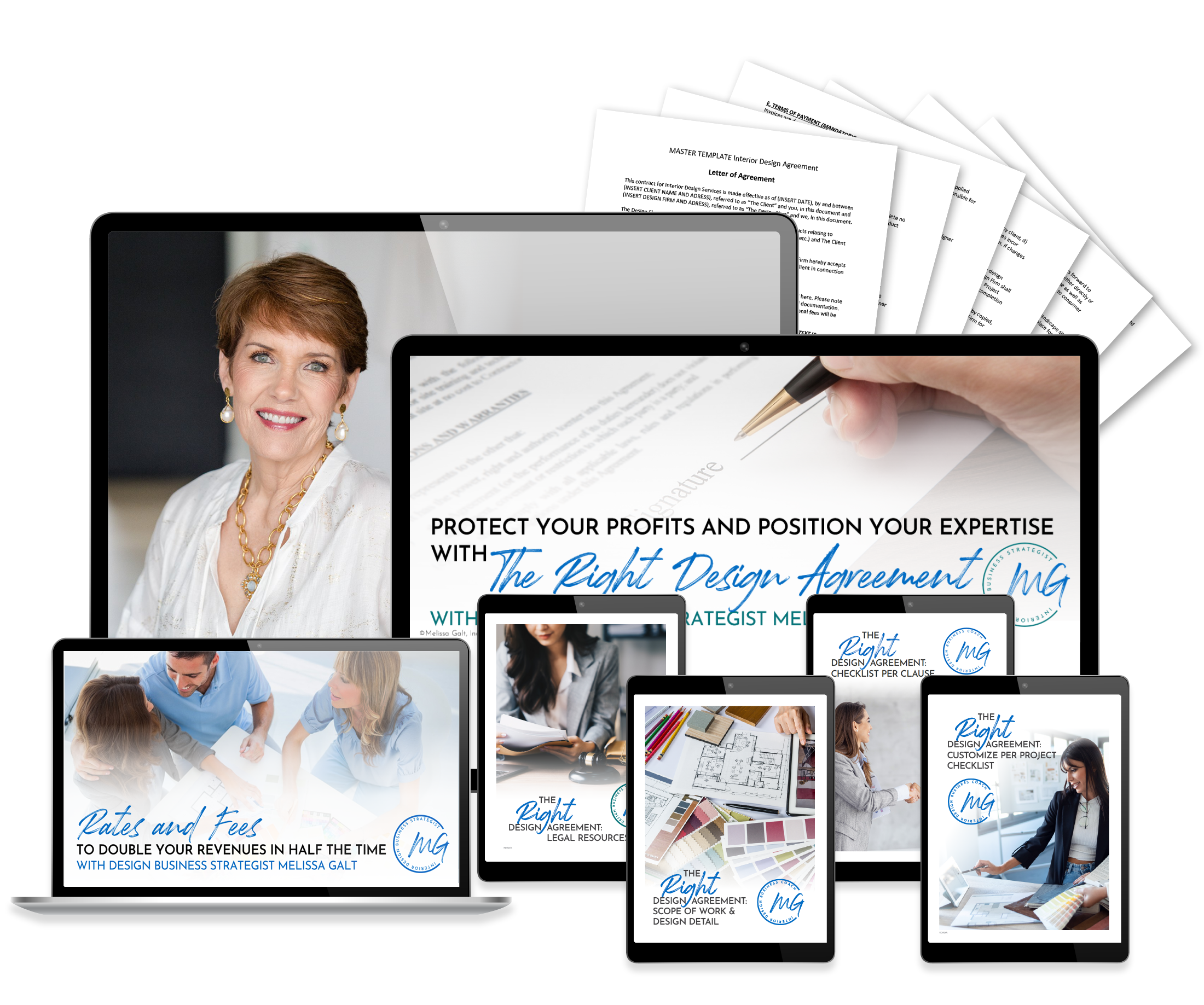 Over the past 15 years, every time I’ve provided my agreement to the designers I coach, they’ve been thrilled to have access to the exact process and strategy I’ve used to take proposals to signed agreements to successful projects and into raving referrals. The same agreement and process I’ve used to achieve a 90% close rate on proposals!